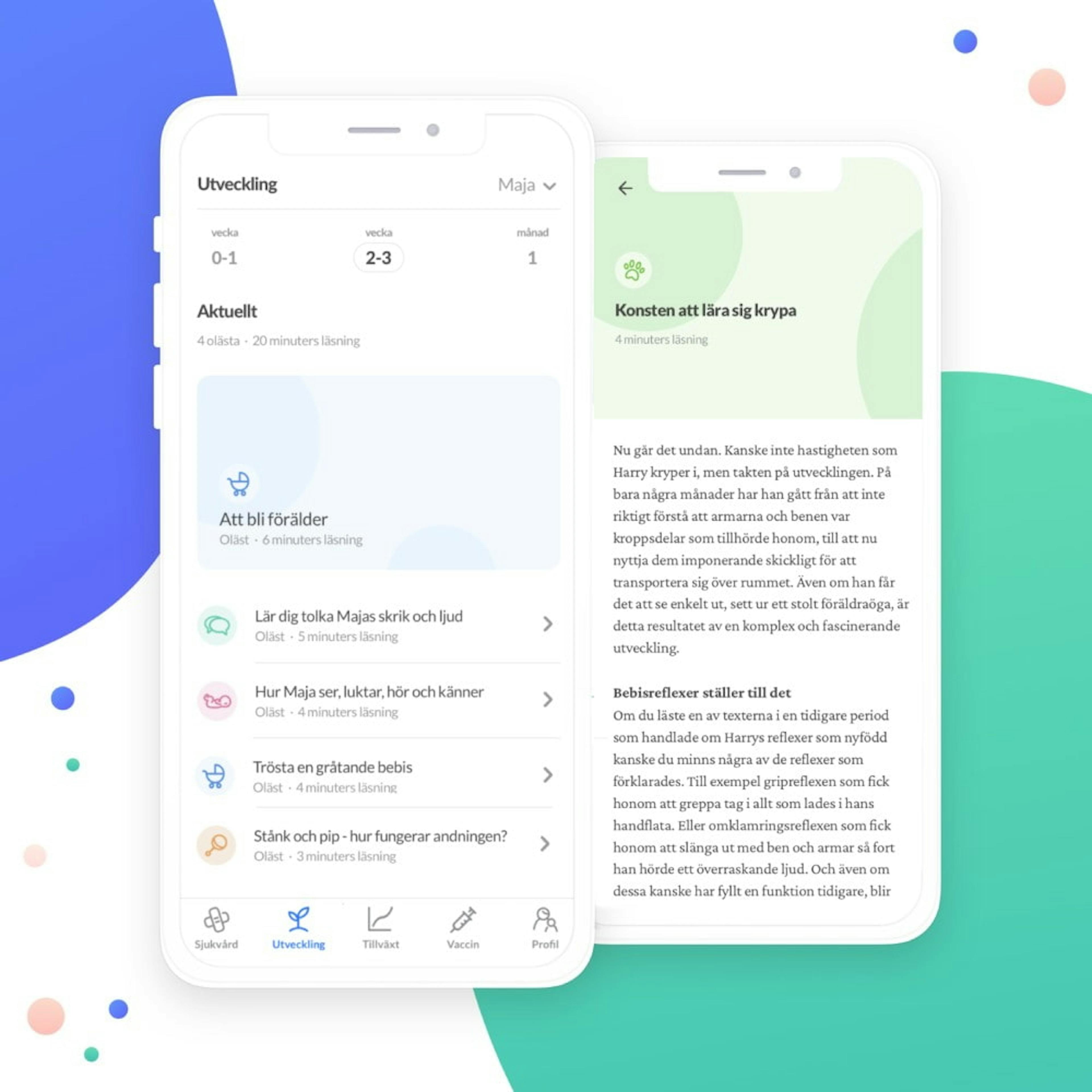 Barns utveckling - följ ditt barns utvecklingsfaser i vår app